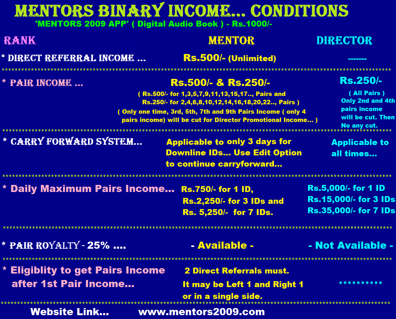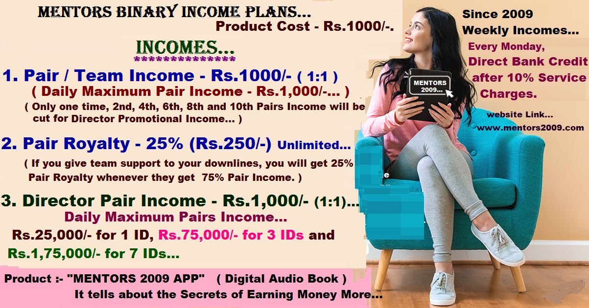 MENTORS BINARY 3 INCOMES for Rs.1000/- Plan....![]() |
