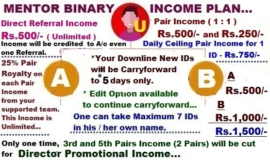 MENTOR BINARY INCOME PLAN - Rs.1000/-![]() |
