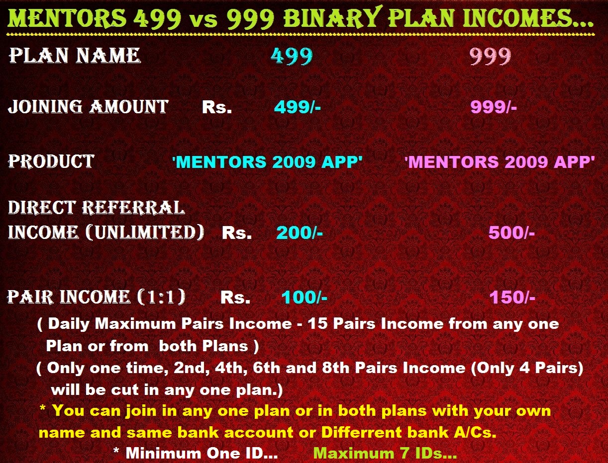 MENTOR 499 vs 999 BINARY INCOME PLANS...![]() |